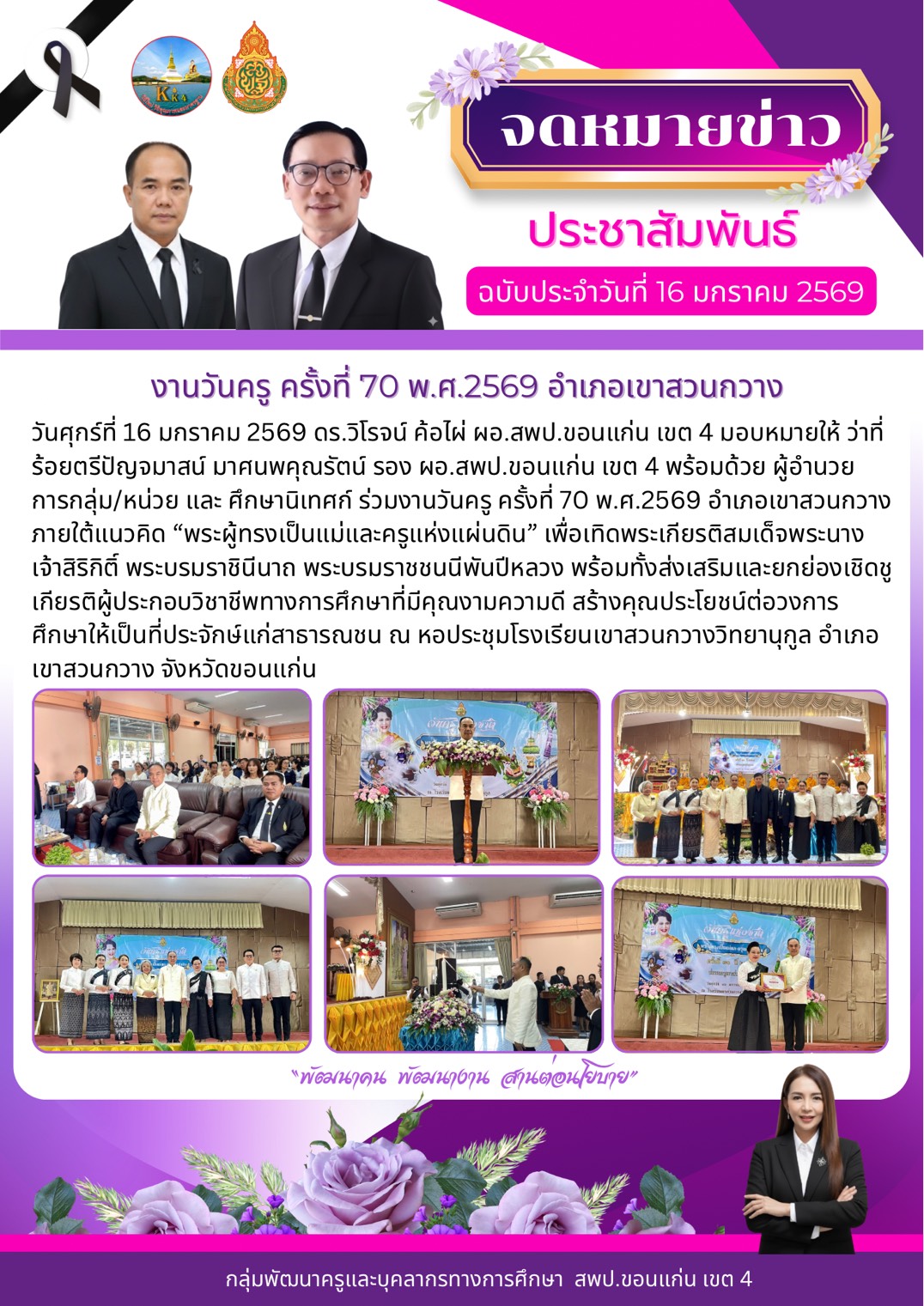 - ประกาศสำนักงานเขตพื้นที่การศึกษาประถมศึกษาขอนแก่น เขต 4 เรื่อง ประกาศรายชื่อผู้มีสิทธิเข้าสู้ราคาการขายทอดตลาดอาคารเรียน อาคารประกอบ 06/พ.ย./2025