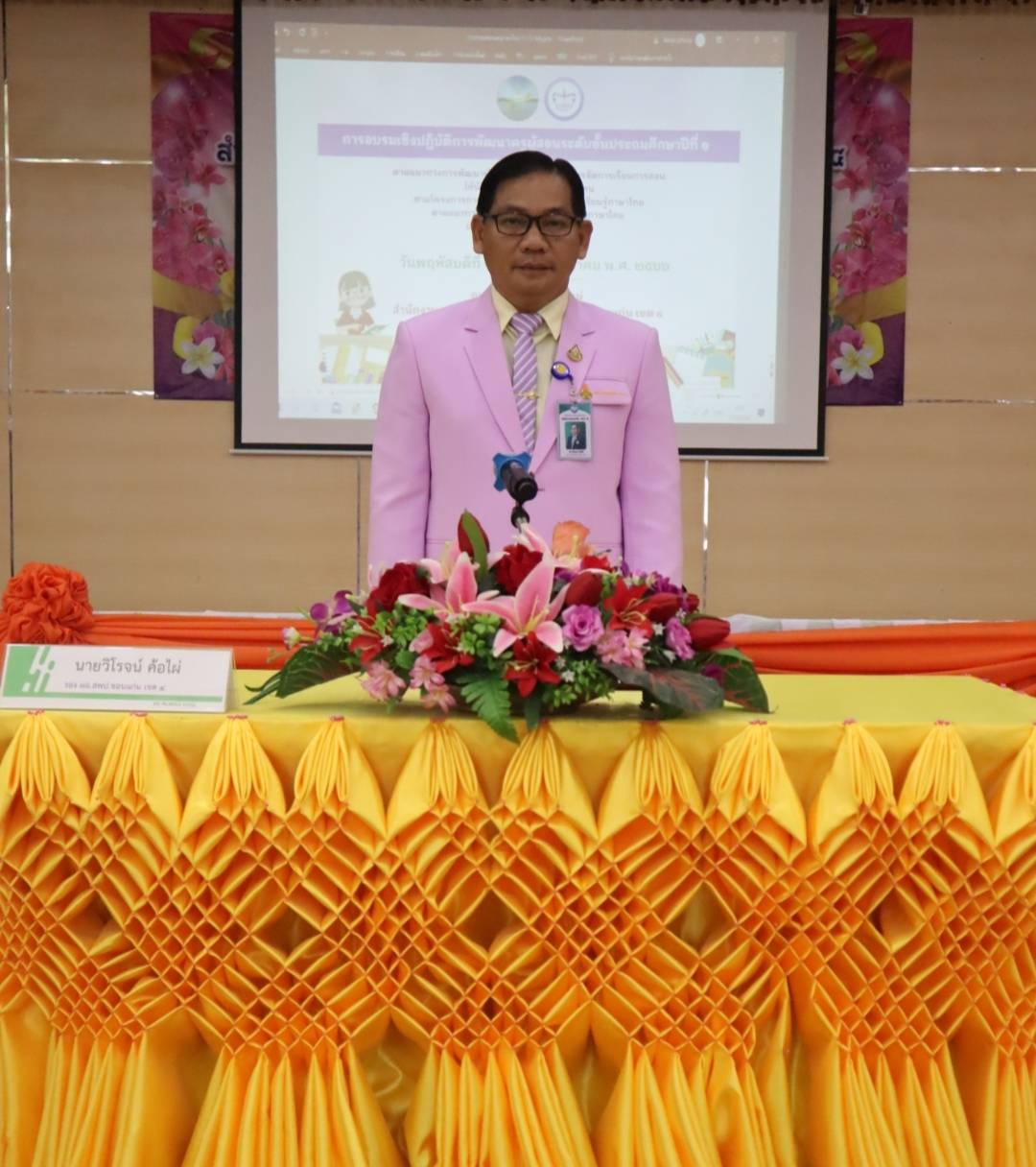 นายชาญกฤต น้ำใจดี ผอ.สพป. ขอนแก่น เขต 4 มอบหมายให้ นายวิโรจน์ ค้อไผ่ รอง ผอ.สพป. ขอนแก่น เขต 4 เป็นประธานในพิธีเปิดการอบรมเชิงปฏิบัติการพัฒนาครูผู้สอนระดับชั้นประถมศึกษาปีที่ 1 ตามแนวทางการพัฒนาห้องเรียนคุณภาพด้านการจัดการเรียนการสอนให้นักเรียนอ่านออกเขียนได้ทุกคน ตามโครงการการพัฒนาคุณภาพการจัดการเรียนรู้ภาษาไทยตามแนวทางการดำเนินงานของชมรมครูภาษาไทยประจำปีงบประมาณ พ.ศ. 2566 ระดับเขตพื้นที่การศึกษา ทั้งนี้ได้รับเกียรติจาก นายบัญชา เสนาคูณ นางกรรณิกา ซาหยอง รอง ผอ. สพป. ขอนแก่น เขต 4 และคณะศึกษานิเทศก์ ร่วมให้กำลังใจและร่วมดำเนินกิจกรรมตลอดการอบรมฯ ซึ่งการจัดอบรมครั้งนี้ประกอบด้วยกิจกรรม ดังนี้ 1) เสวนา ” เรื่องเล่าจากห้องเรียนคุณภาพของคุณครูชั้น ป.1″ จากตัวแทนครูผู้สอน ชั้น ป. 1 ทั้ง 5 อำเภอ 2) นิทรรศการสื่อ ผลงาน และนวัตกรรมห้องเรียนที่เป็นเลิศสามารถเป็นแบบอย่างได้ 3) ฝึกปฏิบัติการการถอดบทเรียนห้องเรียนคุณภาพชั้นประถมศึกษาปีที่ 1 4) กิจกรรมแลกเปลี่ยนเรียนรู้เครือข่าย ครู ป. 1 ทั้ง 15 กลุ่มโรงเรียนร่วมกับศึกษานิเทศก์ประจำกลุ่มซึ่งกิจกรรมที่จัดขึ้นได้รับการตอบรับจากคุณครูผู้เข้ารับการอบรมเป็นอย่างดี ณ อาคารหอประชุมใหม่ สำนักงานเขตพื้นที่การศึกษาประถมศึกษาขอนแก่น เขต ๔