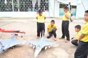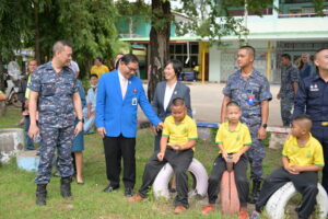 วันที่ 30 ตุลาคม 2567 เวลา 10.00 น. ดร.วิโรจน์ ค้อไผ่ ผู้อำนวยการสำนักงานเขตพื้นที่การศึกษาประถมศึกษาขอนแก่น เขต 4 ร่วมให้การต้อนรับและเป็นผู้แทนพื้นที่กล่าวขอบคุณนาวาอากาศเอกวรกร ชื่นเกสร หัวหน้าหน่วยมิตรประชากองทัพอากาศ พร้อมคณะหน่วยมิตรประชากองทัพอากาศ ที่มาออกพื้นที่ให้บริการทางการแพทย์ ทำฟัน ตรวจโรคทั่วไป ให้บริการตรวจวัดสายตาพร้อมประกอบแว่น แสดงดนตรีและสันทนาการ และการจัดแสดงเครื่องบินเล็กบังคับด้วยวิทยุ พร้อมมอบสิ่งของอุปกรณ์กีฬา ยารักษาโรค แก่นักเรียนโรงเรียนบ้านคำจั่น (ปาสานะเตนุสรณ์) โรงเรียนบ้านนาฝายเหนือ และโรงเรียนคำบอนวิทยา ตลอดจนประชาชนในเขตพื้นที่บริการ ณ หอประชุมโรงเรียนบ้านคำจั่น (ปาสานะเตนุสรณ์) โดยนางสาวจุฑามาศ ทรวงฤดี ผู้อำนวยการโรงเรียนบ้านคำจั่น (ปาสานะเตนุสรณ์) และผู้บริหารสถานศึกษาใกล้เคียงร่วมให้การต้อนรับ