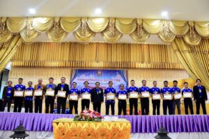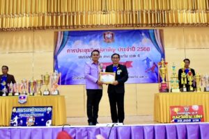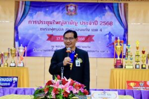ดร.วิโรจน์ ค้อไผ่ ผอ.สพป.ขอนแก่น เขต 4 (ประธานในพิธี) พร้อมด้วย ดร.บัญชา เสนาคูณ และ ว่าที่ร้อยตรี ปัญจมาสน์ มาศนพคุณรัตน์ รอง ผอ.สพป.ขอนแก่น ร่วมประชุมใหญ่สามัญประจำปี 2568 ชมรมฟุตบอล สพป.ขอนแก่น เขต 4 พร้อมมอบเกียรติบัตรรางวัลนักฟุตบอลและผู้สนับสนุนยอดเยี่ยมประจำปี 2567 โดยมี นายสมชาย ไวคำ ผู้อำนวยการโรงเรียนบ้านนาค้อ ประธานชมรมฟุตบอล สพป.ขอนแก่น เขต 4 กล่าวรายงาน พร้อมทั้งรายงานผลการดำเนินงานของชมรมฟุตบอล ประจำปี 2567 และแผนการจัดกิจกรรม ประจำปี 2568 ณ หอประชุมพระธาตุขามแก่น สพป.ขอนแก่น เขต 4