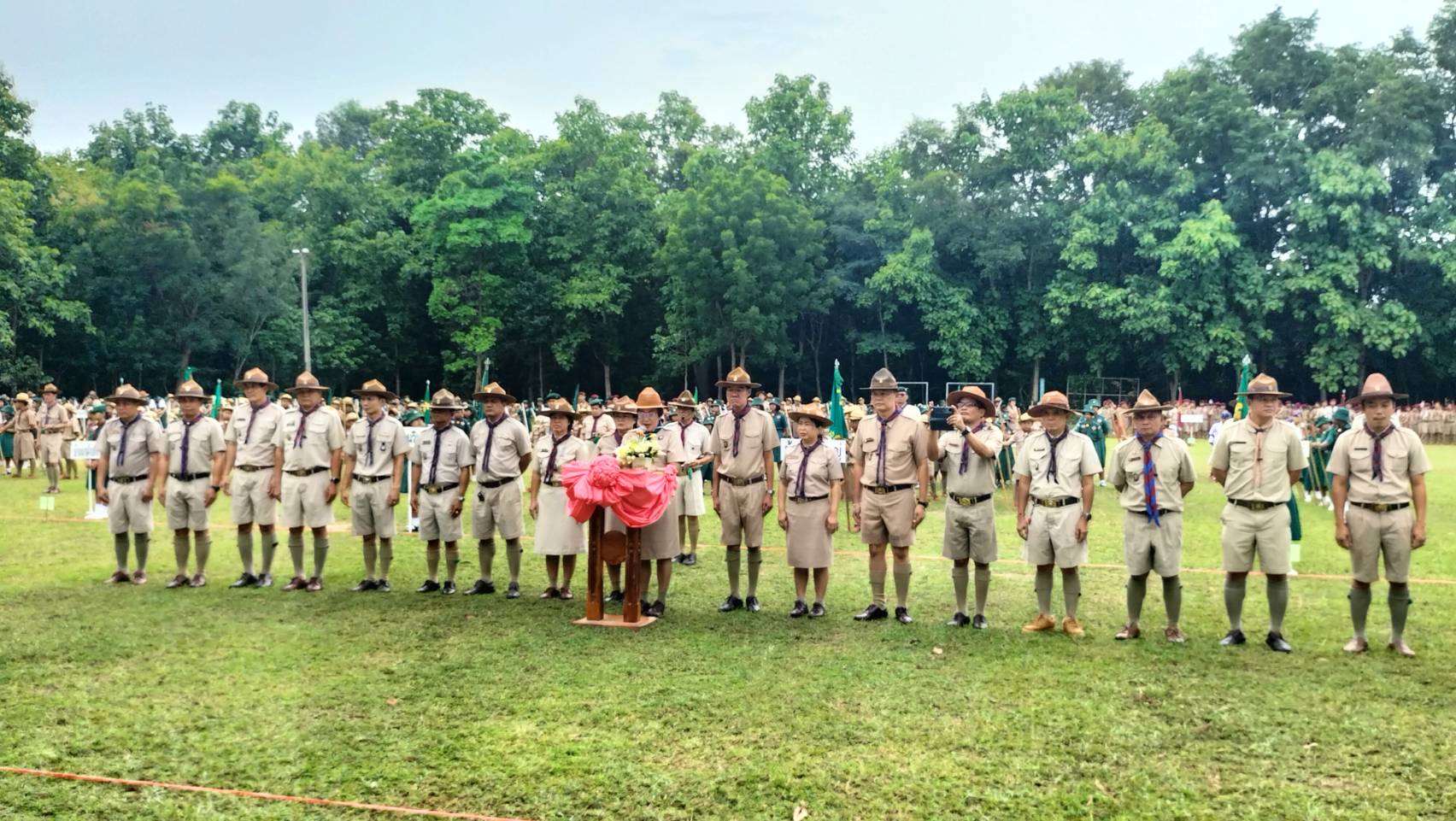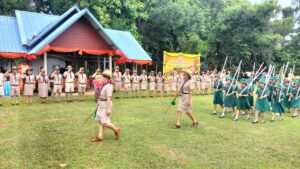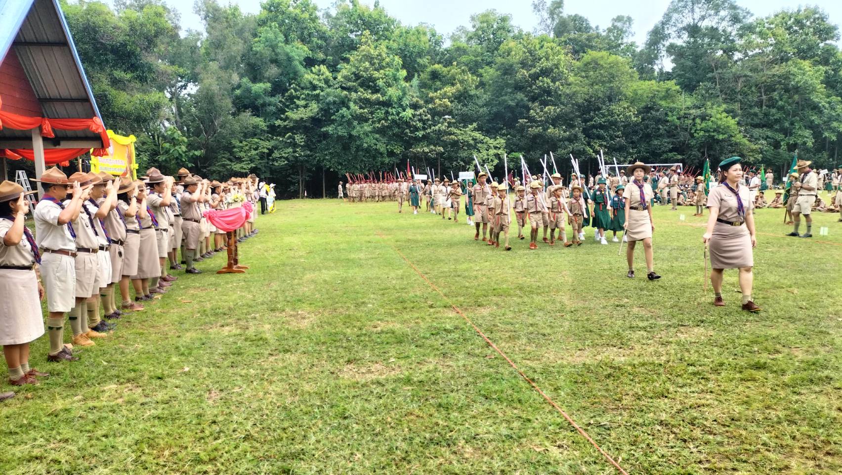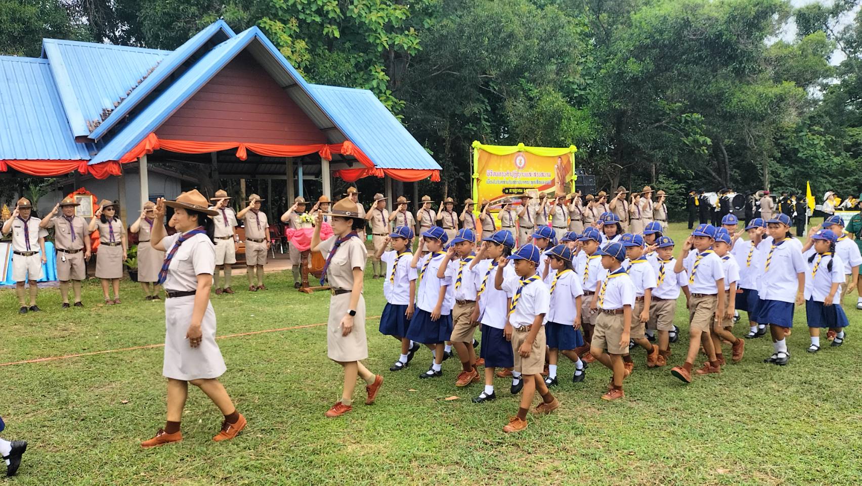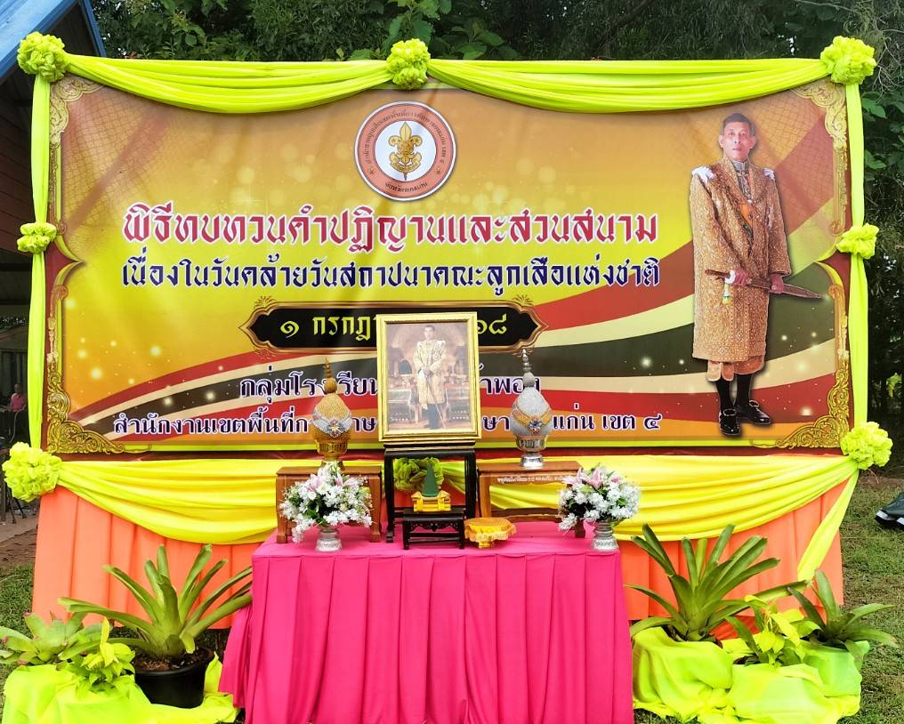 วันอังคารที่ 1 กรกฎาคม /2568 เวลา 09.00 น. ดร.วิโรจน์ ค้อไผ่ ผอ.สพป.ขอนแก่น เขต 4 เป็นประธานในพิธีทบทวนคำปฏิญาณและสวนสนามของลูกเสือ เนตรนารี เนื่องในวันคล้ายวันสถาปนาคณะลูกเสือแห่งชาติ กล่าวรายงานโดยนางกรรณิกา ซาหยอง รอง ผอ.สพป.ขอนแก่น เขต 4 พร้อมด้วยผู้บังคับบัญชาลูกเสือ เนตรนารี กลุ่มโรงเรียนในอำเภอน้ำพองทั้ง 6 กลุ่มโรงเรียน และโรงเรียนเปรมติณสูลานนท์ สังกัดองค์การบริหารส่วนจังหวัดขอนแก่น โดยมีลูกเสือสำรอง ลูกเสือสามัญ ลูกเสือสามัญรุ่นใหญ่ และผู้บังคับบัญชาลูกเสือ รวมจำนวน 1,212 คน เข้าร่วมในพิธี กิจกรรมประกอบด้วย การทบทวนคำปฏิญาณและสวนสนามของลูกเสือ เนตรนารี การส่งลูกเสือ เนตรนารีร่วมบำเพ็ญประโยชน์ กิจกรรมรณรงค์ต้านยาเสพติด กิจกรรมช่วยเหลือสังคม กิจกรรมการปลูกป่า และการเข้ารับการฝึกอบรมตามหลักสูตรผู้บังคับบัญชาลูกเสือ และหลักสูตรลูกเสือจิตอาสาพระราชทาน ณ สนามกีฬาโรงเรียนบ้านเพี้ยฟานโนนสวรรค์ ตำบลบัวเงิน อำเภอน้ำพอง จังหวัดขอนแก่น