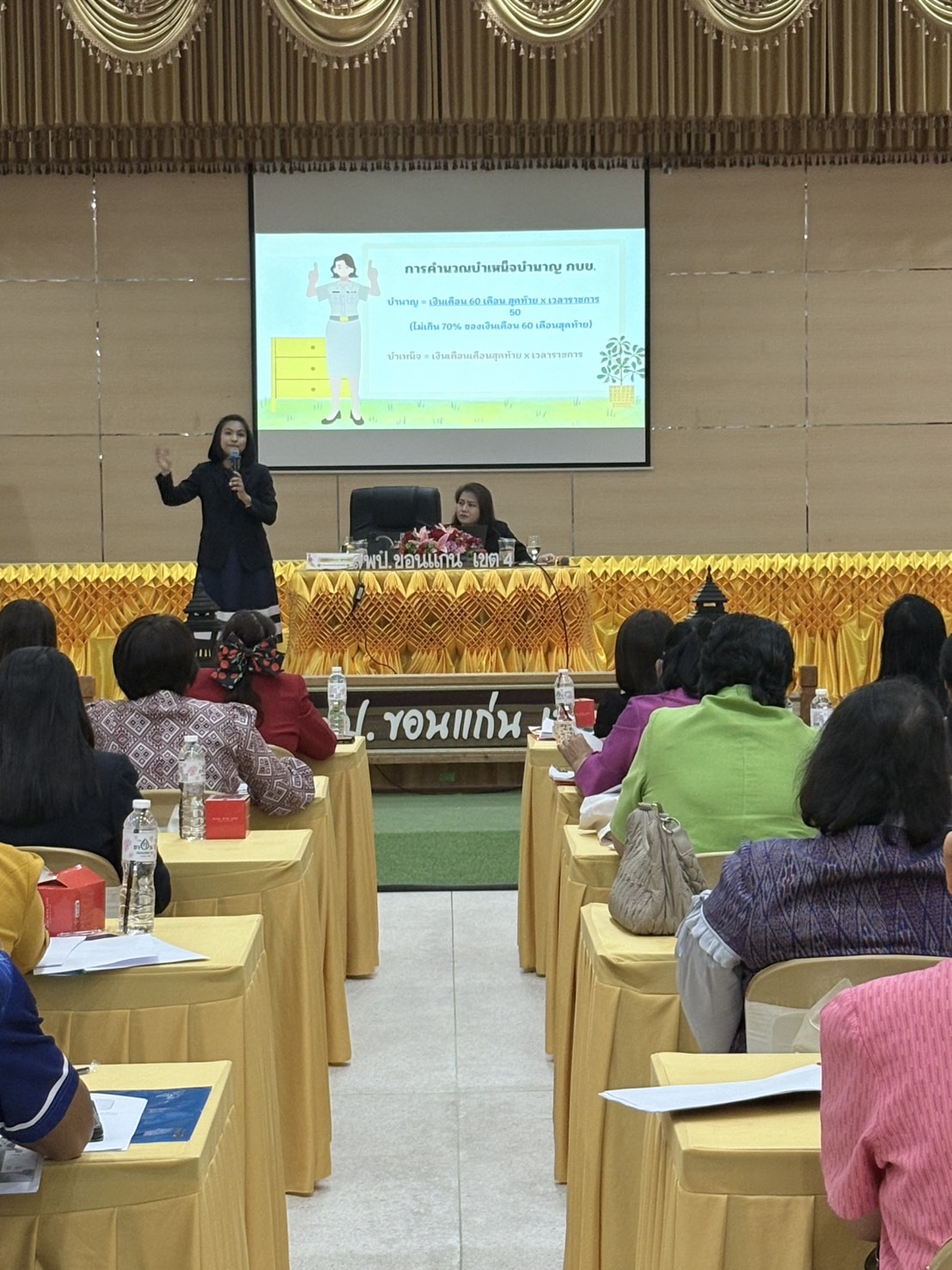 วันอังคารที่ ๘ กรกฎาคม ๒๕๖๘ ดร.วิโรจน์ ค้อไผ่ ผอ.สพป.ขอนแก่น เขต ๔ เป็นประธานในการอบรม”การเตรียมความพร้อมสำหรับผู้เกษียณอายุราชการ“ ประจำปีงบประมาณ ๒๕๖๘ ณ หอประชุมพระธาตุขามแก่น สพป.ขอนแก่น เขต ๔ กลุ่มเป้าหมายในการอบรมคือข้าราชการและลูกจ้างประจำในสังกัด ๓๙ คน โดยได้รับเกียรติจากวิทยากรจากสำนักงานคลังจังหวัดขอนแก่นคือ น.ส.ปิติมาศ ผกามาศ นักวิชาการคลังชำนาญการพิเศษ และนางชมพร วรุณศิริ นักวิชาการคลังชำนาญการ เป็นวิทยากรบรรยายในหัวข้อสิทธิประโยชน์ของผู้รับบำนาญ และ น.ส.สุดารัตน์ มูลทา นักวิชาการเงินและบัญชีชำนาญการพิเศษ บรรยายในหัวข้อการตรวจสอบรายละเอียดการขอรับเงินบำเหน็จบำนาญข้าราชการและลูกจ้างปรจำ โดยการประชุมดังกล่าวได้จัดทำข้อมูลผู้รับบำเหน็จบำนาญเสร็จสมบูรณ์เป็นที่เรียบร้อยด้วยดี📝🖍️📝