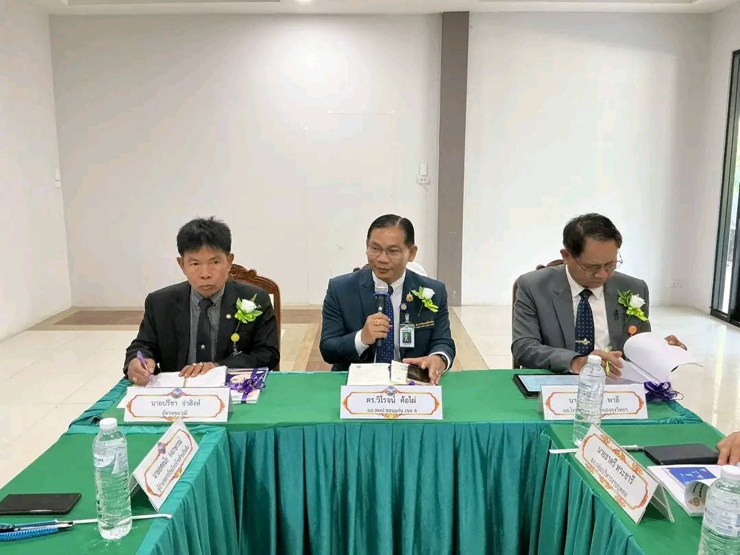 วันจันทร์ที่ 23 กุมภาพันธ์ 2569 ดร.วิโรจน์ ค้อไผ่ ผอ.สพป.ขอนแก่น เขต 4 พร้อมด้วย ว่าที่ร้อยตรีปัญจมาสน์ มาศนพคุณรัตน์ รอง ผอ.สพป.ขอนแก่น เขต 4 คณะกรรมการประเมิน (Evaluation Team) คณะกรรมการที่ปรึกษา/พี่เลี้ยง (Coaching Team) และคณะผู้บริหารสถานศึกษา รุ่น Director2024/3 จำนวน 6 ราย (บรรจุและแต่งตั้ง 13 กุมภาพันธ์ 2568) เข้าร่วมการประชุมเชิงปฏิบัติการประเมินสัมฤทธิผลการปฏิบัติงานในหน้าที่ตำแหน่งผู้อำนวยการสถานศึกษา (รอบระยะเวลา 1 ปี) เพื่อนำเสนอผลการปฏิบัติงานในหน้าที่ แลกเปลี่ยนเรียนรู้ประสบการณ์และสะท้อนผลการปฏิบัติงานในหน้าที่ตำแหน่งผู้อำนวยการสถานศึกษา ตามองค์ประกอบและตัวชี้วัดที่ สพฐ.กำหนด ณ โรงแรมชาร์-ลอง บูทรีค อำเภอเมือง จังหวัดกาฬสินธุ์