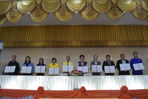 นายชาญกฤต น้ำใจดี ผอ.สพป. ขอนแก่น เขต 4 เป็นประธานในพิธีลงนามบันทึกข้อตกลงความร่วมมือ (MOU) โครงการสถานศึกษาสีเขียว ปลอดยาเสพติดและอบายมุข ปีการศึกษา 2565 พร้อมด้วย รอง ผอ.สพป. ขอนแก่น เขต 4 นางกรรณกา ซาหยอง และผู้อำนวยการสถานศึกษาในสังกัด สพป. ขอนแก่น เขต 4 ณ ห้องประชุมใหม่ สพป. ขอนแก่น เขต 4